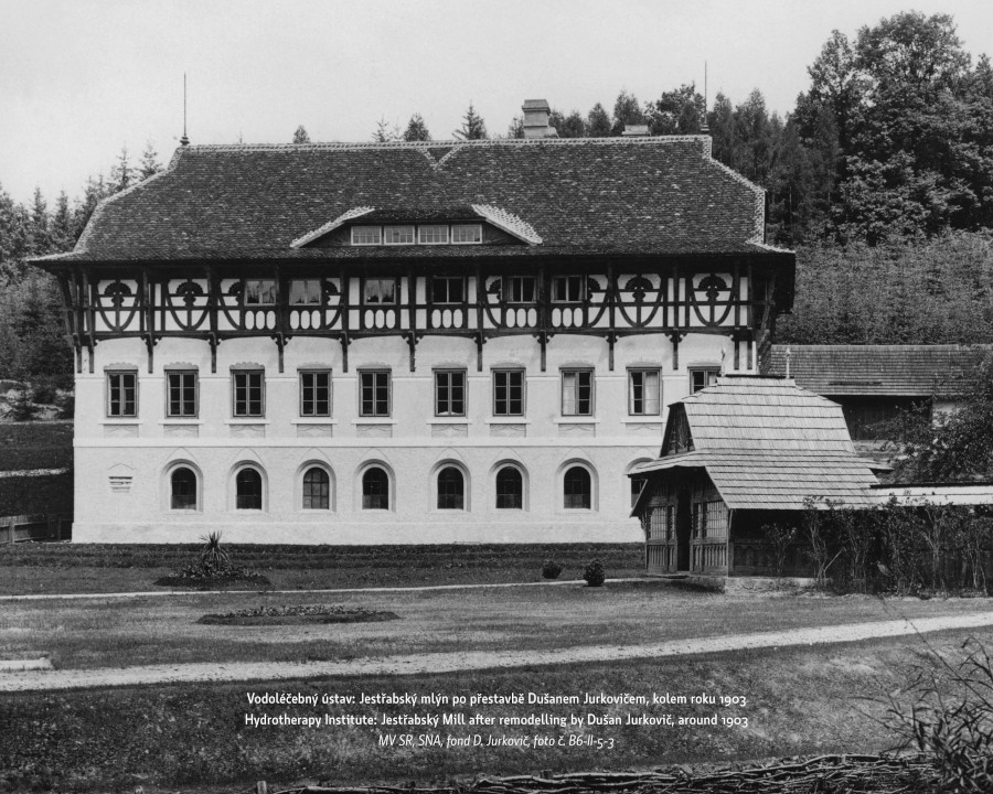 They, together with their other property, contributed it in 1902 to the first spa joint-stock company, founded by Dr. František Veselý. Architect Jurkovič was entrusted with the conversion of the mill into a Hydrotherapy Institute. This proceeded very quickly and the hydrotherapy facility was already open for the 1902 spa season, though the economy and short duration of the conversion meant that most of the older structures were preserved. Hydrotherapy operated in the building for approximately 100 years during which time several building modifications were carried out.